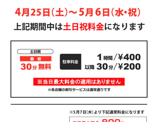 GW駐車場特別料金のお知らせ