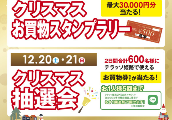🎄テラッソ姫路 クリスマスフェア🎄 お買物スタンプラリー&抽選会 開催! ※画像をクリックすると...
