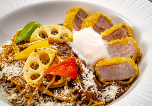 スパイシーなイタリアンカレーのパスタ 姫路初のブランドポーク「桃色吐息」をレアカツにし、 卵かけごはん祭り2年連続日本一の スー...