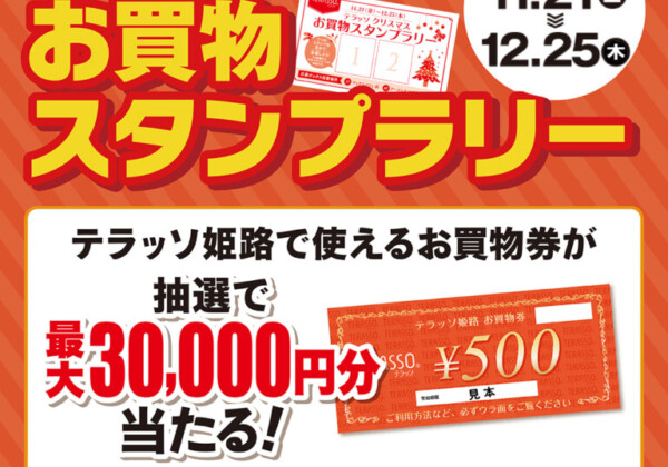 🎁テラッソ姫路 クリスマスお買物スタンプラリー🎁 抽選で最大30,000円分のテラッソ姫路お買物...