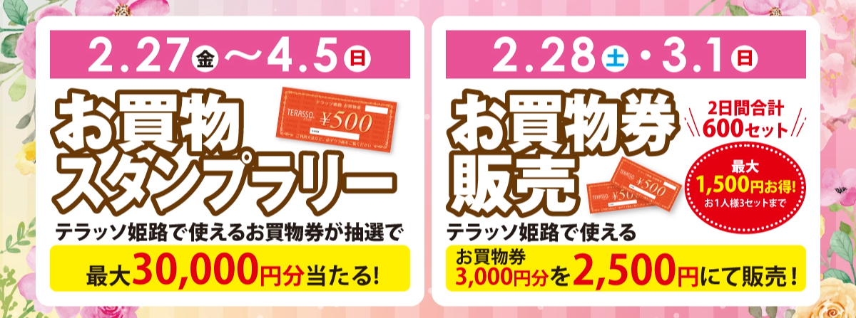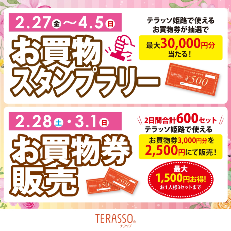 【2/27(金)~4/5(日)】お買物スタンプラリー&【2/28(土)・3/1(日)】テラッソ姫路お買物券販売 開催!