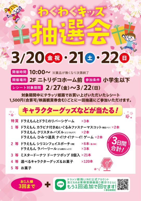 【3/20(金・祝)・21(土)・22(日)】春のわくわくキッズ抽選会 開催!