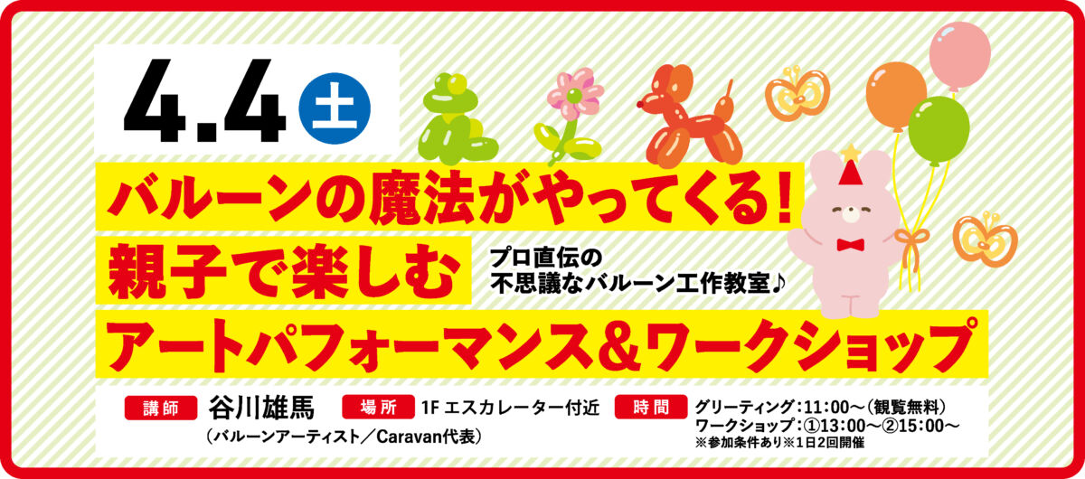 【4/4(土)】バルーンの魔法がやってくる!親子で楽しむアートパフォーマンス&ワークショップ