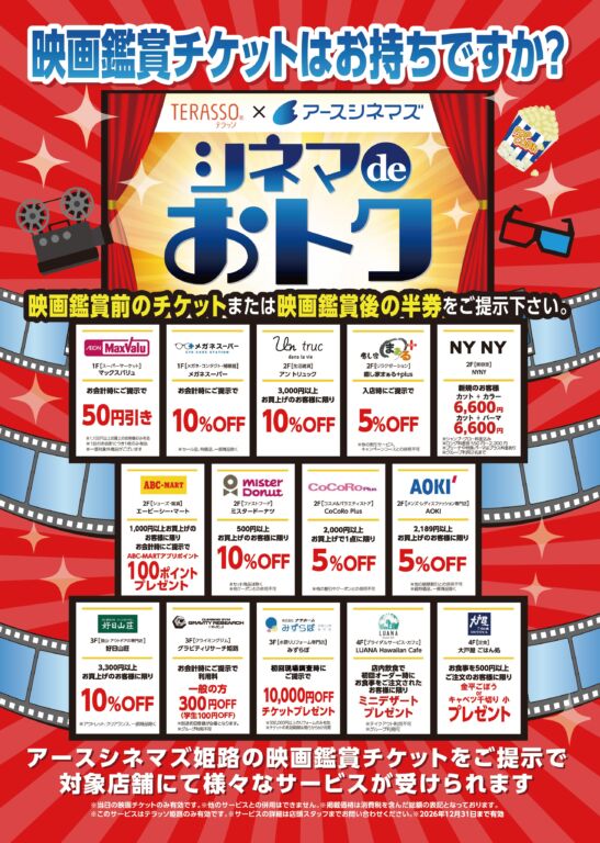 映画鑑賞前・映画鑑賞後のチケットの半券をご提示で