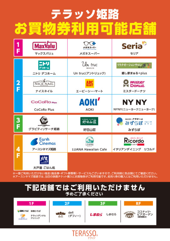 ■テラッソ姫路お買物券利用可能店舗のご案内