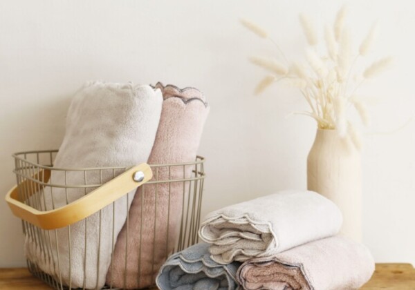 くすみカラーとウエーブ型デザインが大人かわいいフェイスタオル。マイクロファイバー素材なので吸水性抜群!