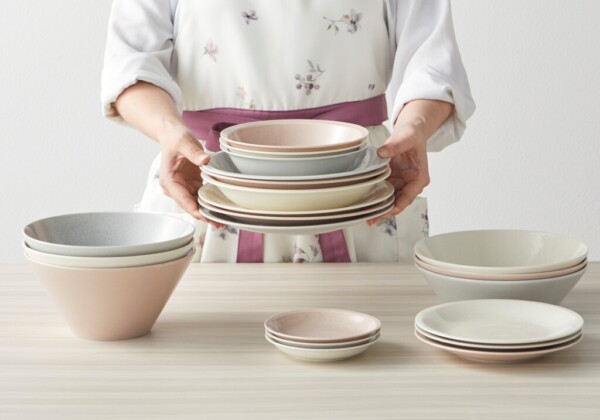 デコホームオリジナルのくすみカラーがかわいい超軽量食器「カルエクレ」シリーズ。薄く軽くて、かさばらないので収納に便利。