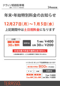 テラッソ姫路-年末年始特別料金サイン-案 – 2022 (1) 2021.11.25 テラッソ姫路 関連記事一覧 夏のダイエットシーズン到来☆全エステ1100円で技術体験... 2022.07.01 毎週木曜日は恒例のレディースデーです 2024.04.04 990円でインドエステを体感!!冬の溜めこみボディをケア... 2024.01.09 本日1/10から『店舗限定キャンペーン 店内定価商品10%O... 2025.01.10 定価商品10%OFF☆ 2024.09.16 cocone 2023.08.01 本日より【ミレー&グレゴリー】ポイントアップキャン... 2024.04.19 【母の日】スペシャルセットコース90分★お母さん以外... 2022.05.08